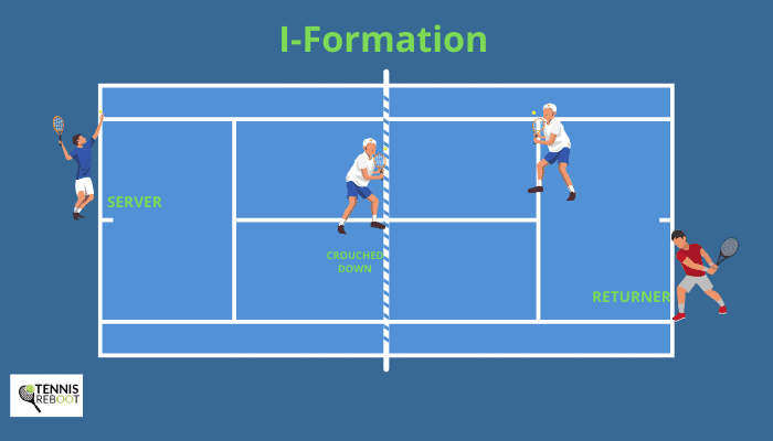 I 형성은 Net 플레이어와 서버가 I에 가까운 무언가를 형성 할 때입니다. 순 플레이어는 서 있거나 중앙 서비스 라인에 가깝습니다. 서버도 중간에 가깝게 유지됩니다. 서버와 파트너는 각 플레이어가 서브 후 이동하는 방향을 결정하기 위해 지점 전에 통신합니다. 이것은 종종 손 신호로 수행됩니다.