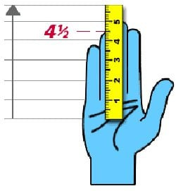 아래 그림과 같이 엄지손가락과 손가락의 교차점에 맞춰 손바닥에 눈금자를 정렬합니다.