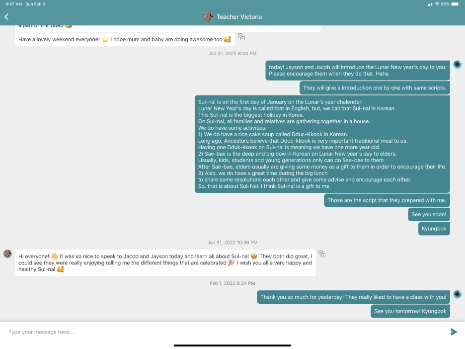 [수업 전 사전에 미리 아이들이 이야기 할 내용을 미리 메세지로 공유 드립니다]