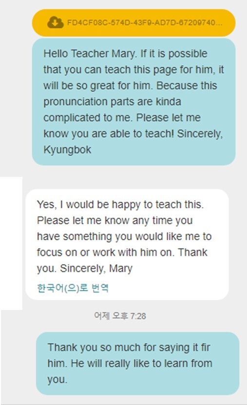 스펠링에 대한 공부인데요. 영어 발음에 대한 구분 등 영어를 공부한 제게도 너무 헷갈리거나 어려운 부분이라 이런 경우 튜터 선생님께 미리 양해를 구하고 수업시간 중에 부탁을 하게 되었더니 너무나 감사하게 직접 가르쳐 주신다고 하셔서 아이가 너무 흡족히 만족해 하는 수업을 하게 되었습니다.